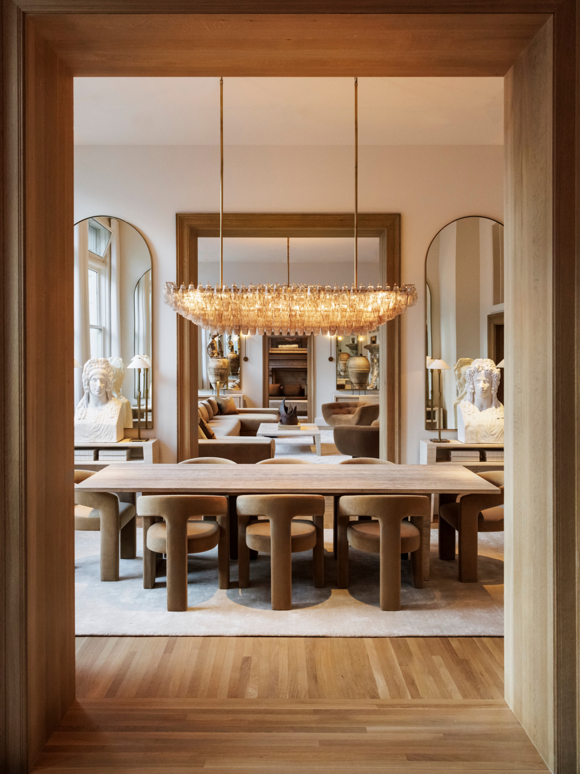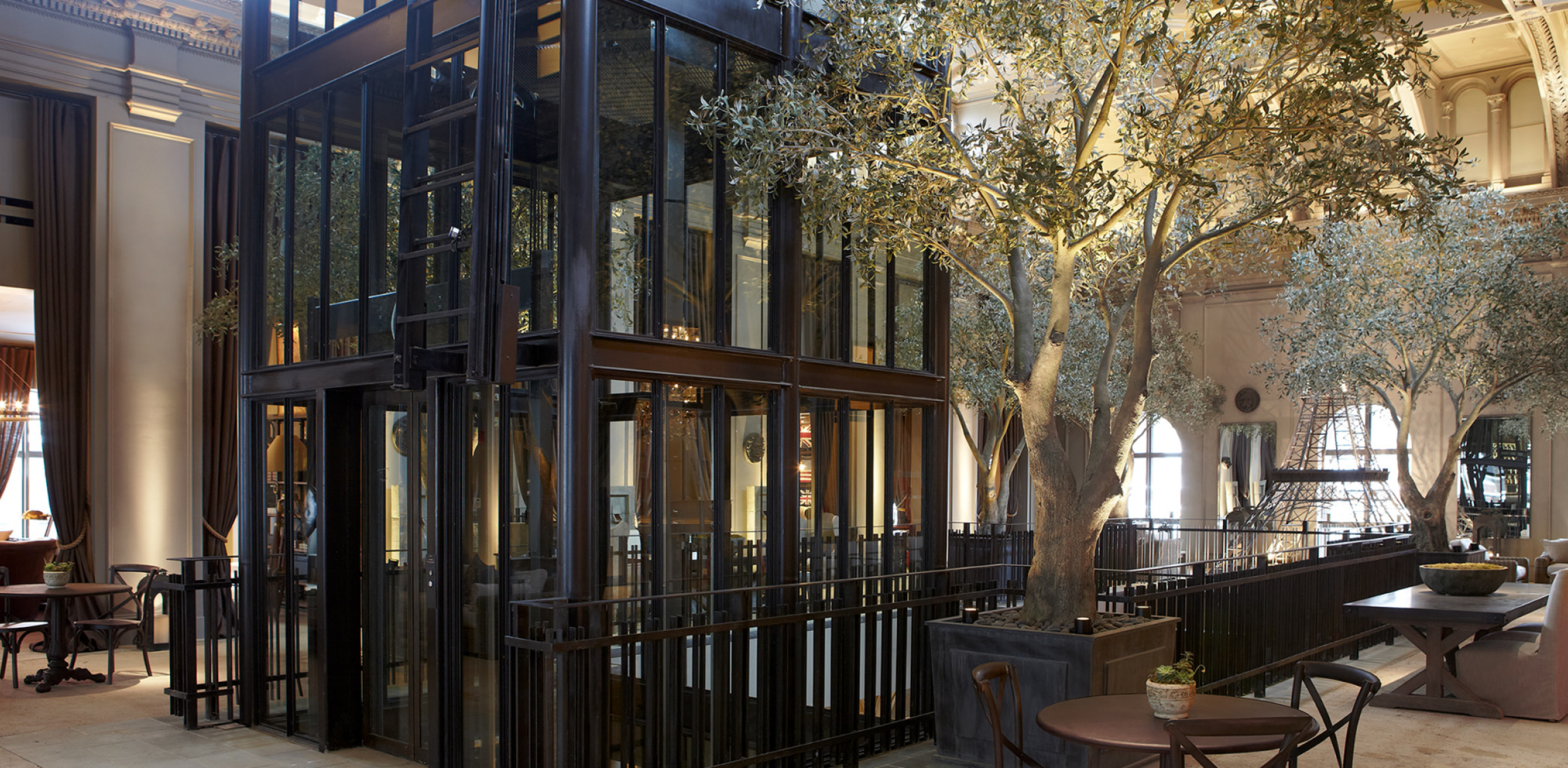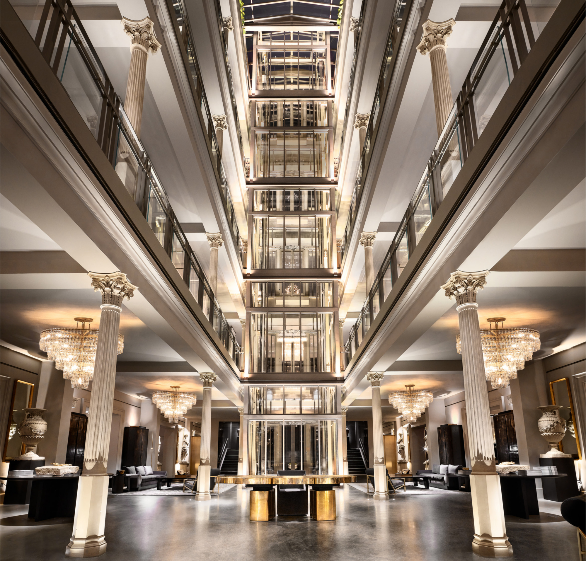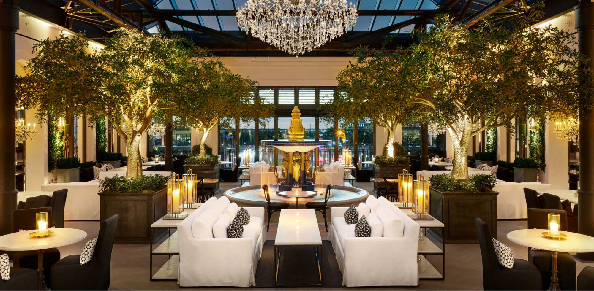 Located just off the Avenue Montaigne, RH Paris, The Gallery on the Champs-Élysées, stands at the global epicenter of fashion and luxury. Pass through the majestic gold leaf gates down a crushed limestone path to a secret garden where ivy-covered walls frame the six-meter cast medallion doors marking the entrance. The gallery, spanning seven levels, is connected by a soaring atrium of floating cast medallion stairs and a glass elevator. Discover two restaurants – Le Jardin RH, a glass and steel structure inspired by the Grand Palais, and Le Petit RH, a jewel box and garden rooftop with views of the Eiffel Tower.