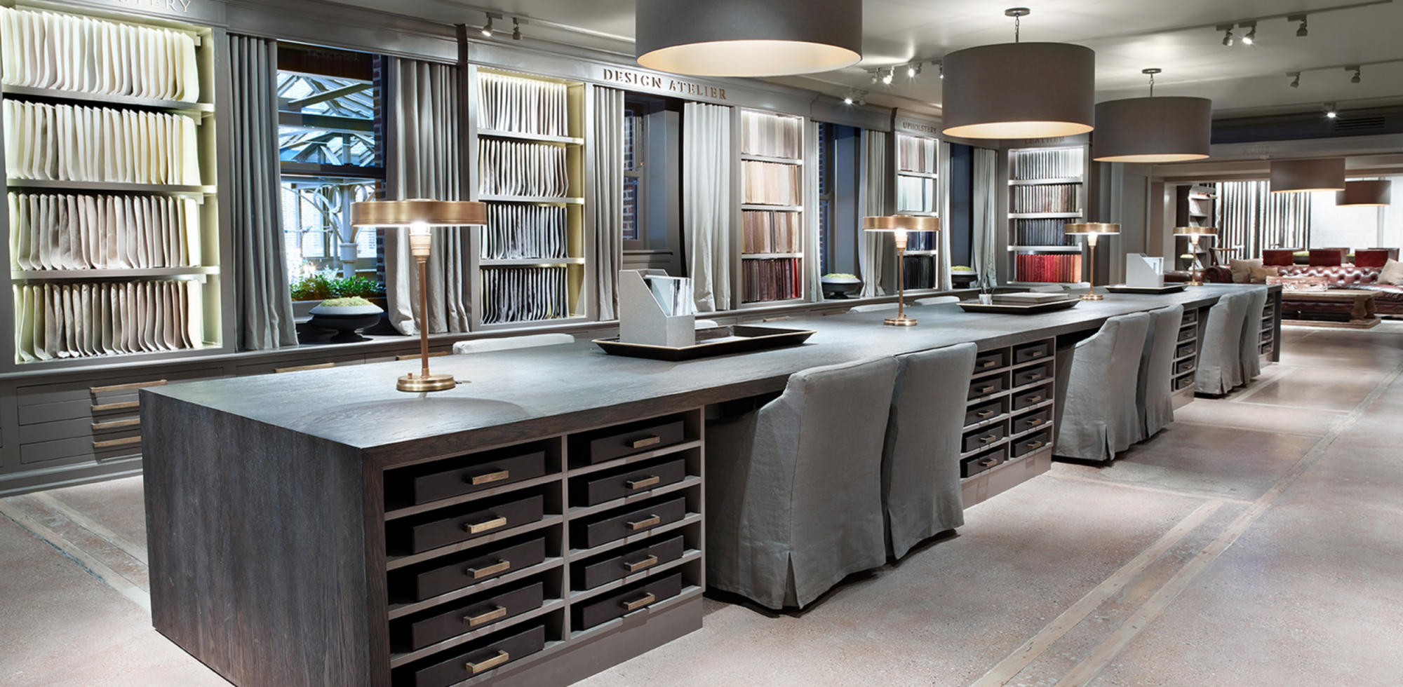 Our four-story, 97,000-square-foot design gallery blurs the lines between residential and retail, indoors and outdoors, home and hospitality. Dine beneath a dramatic glass-and-steel atrium amid sparkling chandeliers, heritage olive trees and trickling fountains at the RH Ocean Grill, a rooftop restaurant with sweeping views of the California coastline. Enjoy a glass of wine or Champagne from our wine bars while you experience artistic installations of RH Interiors, Modern, Baby & Child, TEEN and Outdoor collections, along with our first-ever Waterworks Showroom. Visit RH Interior Design and interact with our professional designers, who can help reimagine your space and conceptualize a fresh and inspiring way to live.