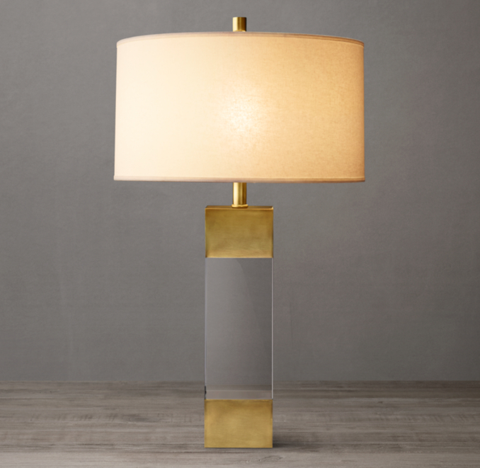 The classic 1970s Lucite block lamp is reimagined in transparent crystal. Designed by Ian K. Fowler, our version features a restrained, cubic column of clear crystal glass bookended at top and bottom in richly finished metal.