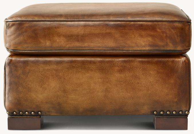 Hand assembled by master craftsmen in Hickory, North Carolina. The Ambrose ottoman by Alan Price embodies the bold, streamlined forms of 1940s French moderne. Generous cushioning plays counterpoint to the silhouette's crisp architecture, which is highlighted by hand-hammered nailhead trim. Guaranteed for life.