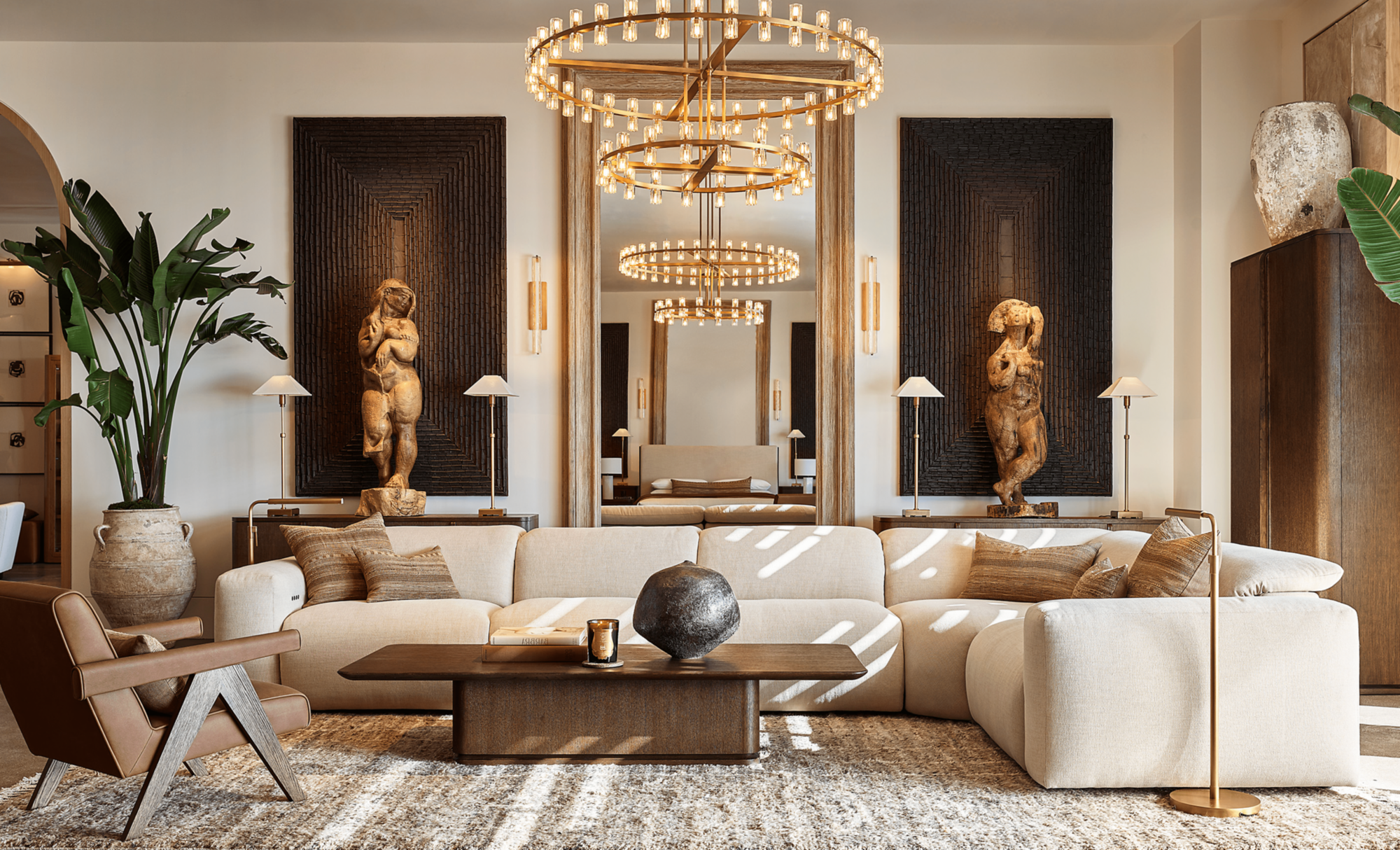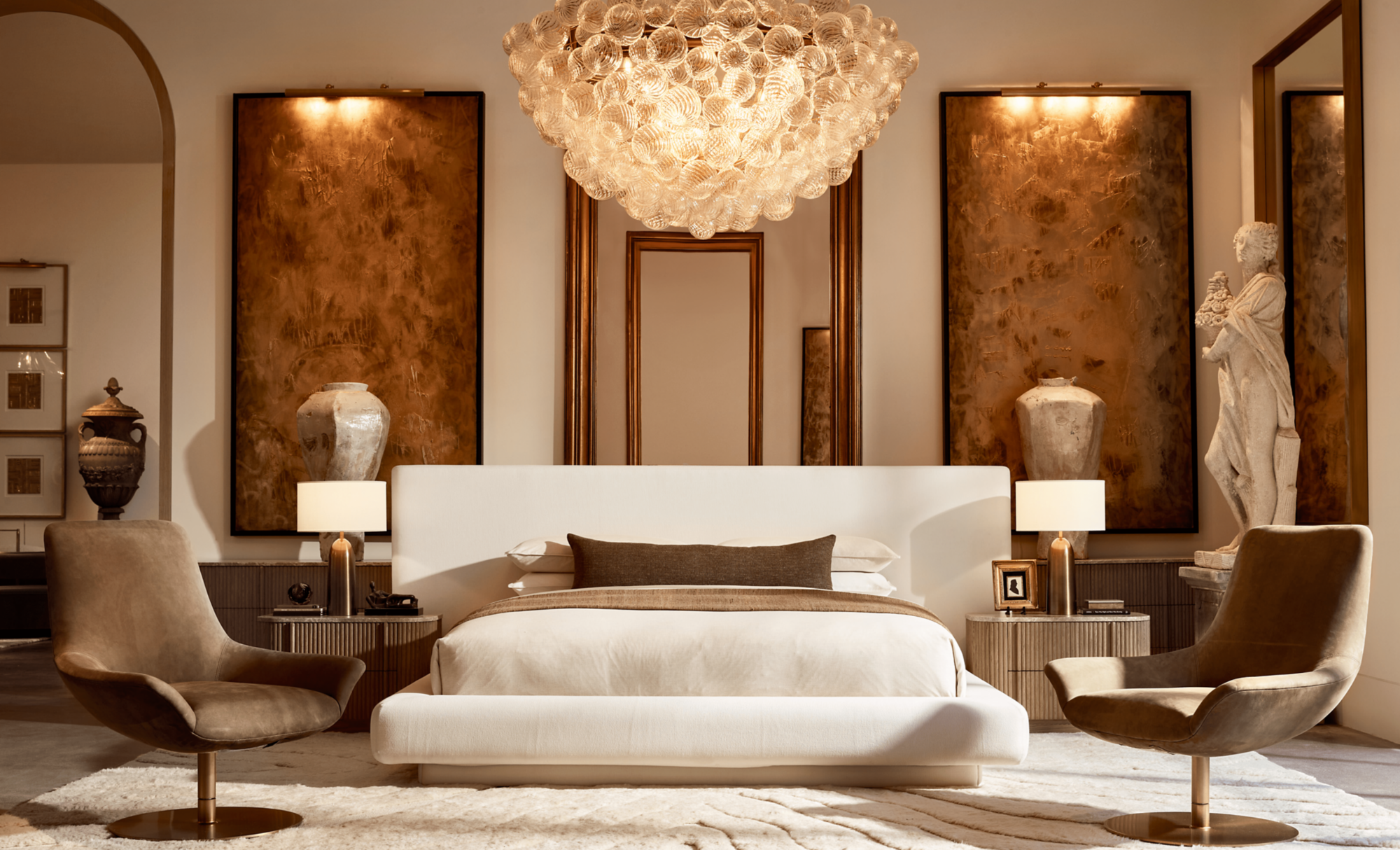 Explore artistic installations of furniture, lighting and décor from RH Interiors, Modern, Baby & Child, TEEN and Outdoor, seamlessly integrated with rare art, antiques and artifacts from across the globe.
